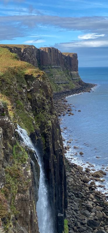 Nun ging es heute auf die Insel Skye. Auf Skye bekommt man gebündelt alles was Schottland zu bieten hat. Schroffe Felsen, blühende Heide, Wasserfälle, kleine Buchten mit wunderschönen weißen Stränden, alte Burgen …